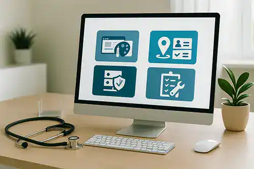 Auf unserer Preis-Seite sehen Sie, dass wir Ihre Praxis-Webseite zu einem festen, transparenten Monatstarif realisieren – ohne versteckte Gebühren. Für 49,99 € pro Monat erhalten Sie eine komplette Website inklusive Texte, Bilder, Domain (.de oder .com), Hosting und E‑Mail‑Adressen; die technische Pflege wie SSL, tägliche Backups und Updates ist ebenfalls enthalten. Zusätzlich bietet das Paket Praxis‑Profile 360° eine kostengünstige Lösung für 29,99 € pro Monat, mit der wir Ihre Online-Einträge in Google und medizinischen Verzeichnissen prüfen, vereinheitlichen und laufend pflegen.